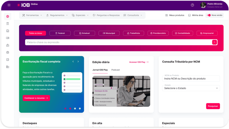 Atualmente, escritórios de contabilidade e empresas podem centralizar tecnologia e inteligência IOB em um único local.