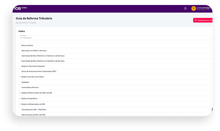 Entenda as novas regras através de um guia completo e prático, comentado por especialistas IOB, e tire suas dúvidas com nossa Inteligência Artificial.